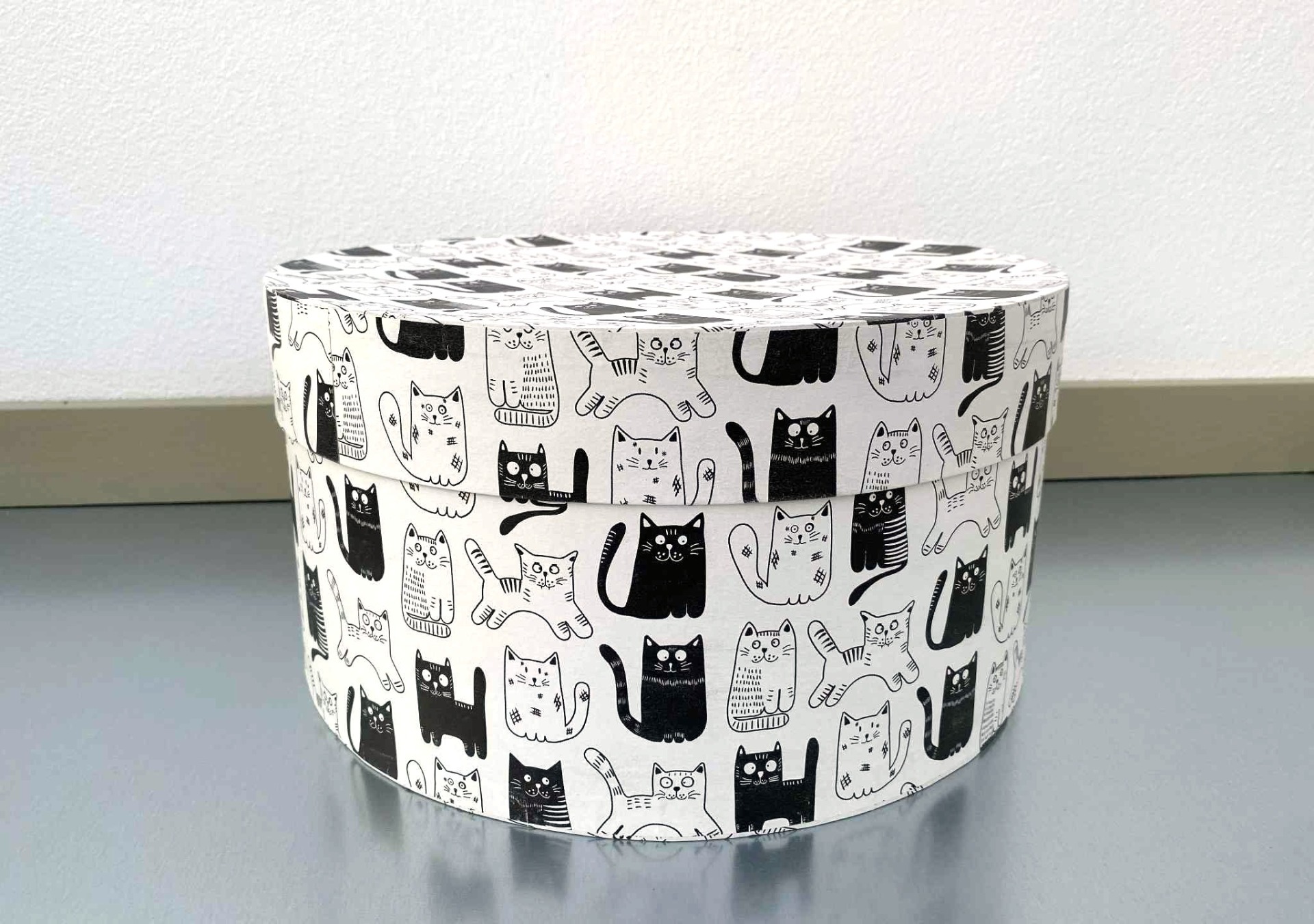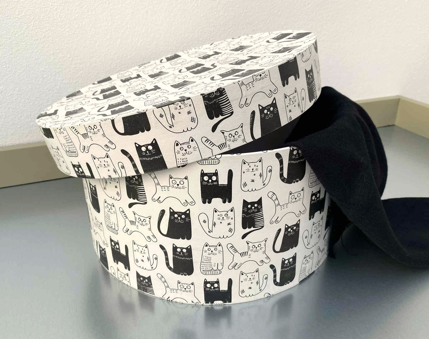 - Popis: Tato ručně vyráběná kulatá krabice je ideální pro uchování a prezentaci vašich předmětů. Je vyrobena z pevné knihařské lepenky s papírovým potahem, který dodává krabici elegantní vzhled.