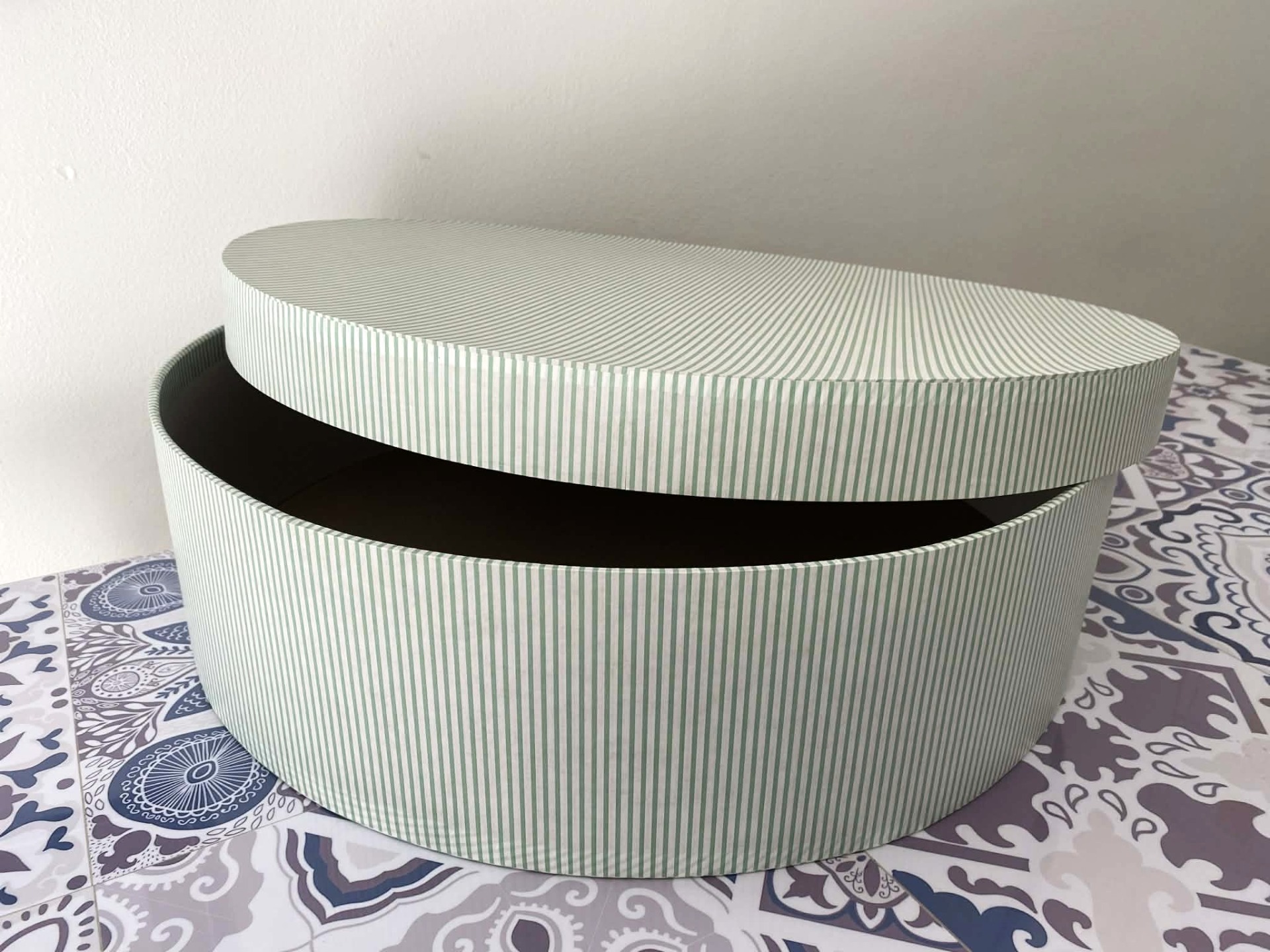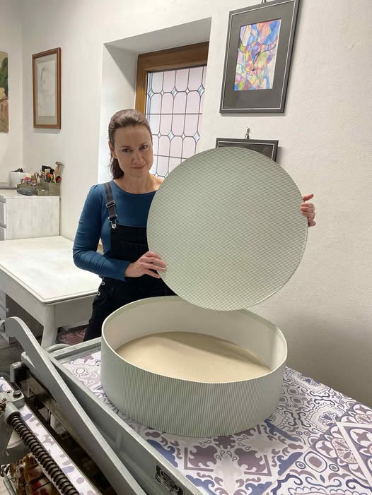 - Název: Ručně vyráběná kulatá krabice na míru s papírovým potahem -Průměr 56 cm, výška 15 cm